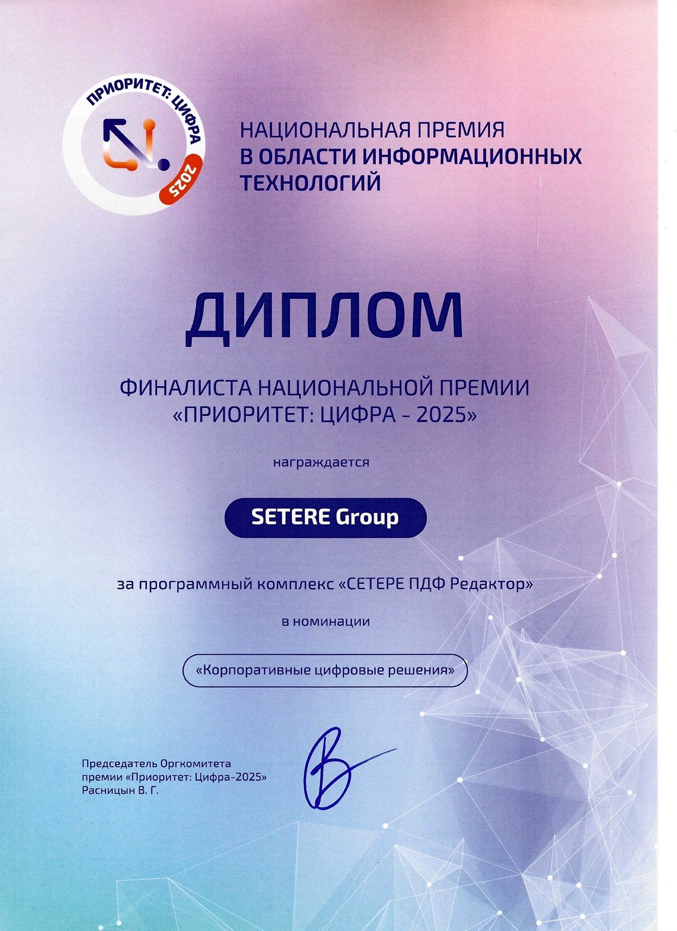 Программный комплекс «СЕТЕРЕ ПДФ Редактор» успешно прошел этап экспертного отбора и был представлен в финале Премии «ПРИОРИТЕТ-ЦИФРА 2025».